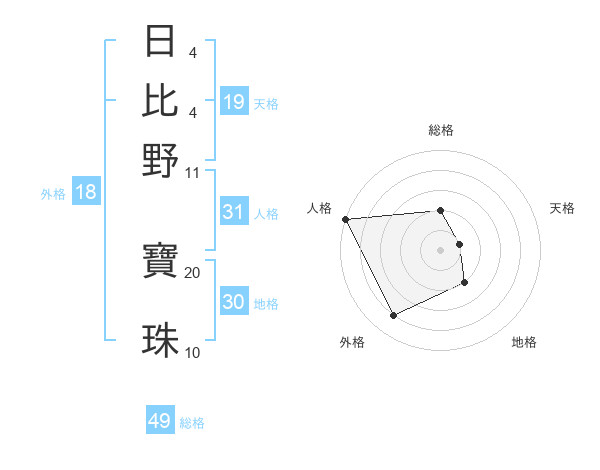 日比野 寶珠さんの天格は19画の1点!