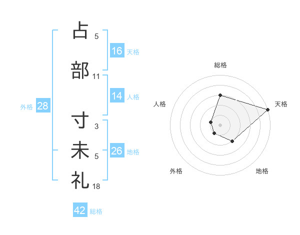 占部 寸未礼さんの天格は16画の5点!
