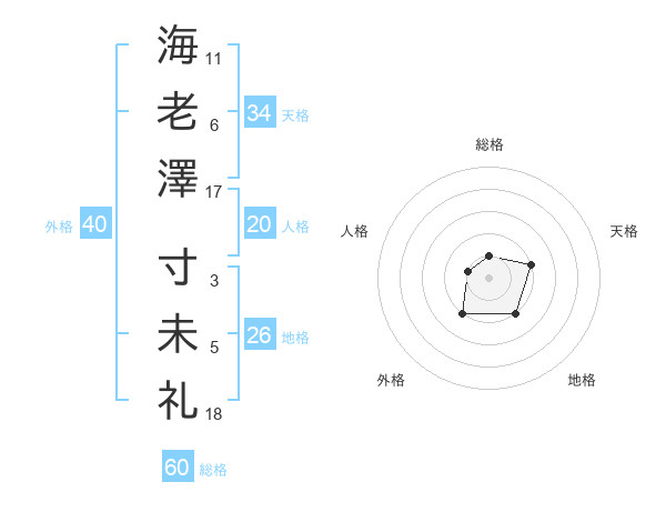 海老澤 寸未礼さんの総格は60画の1点!
