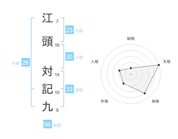 江頭 対記九さんを姓名の画数から五運を鑑定