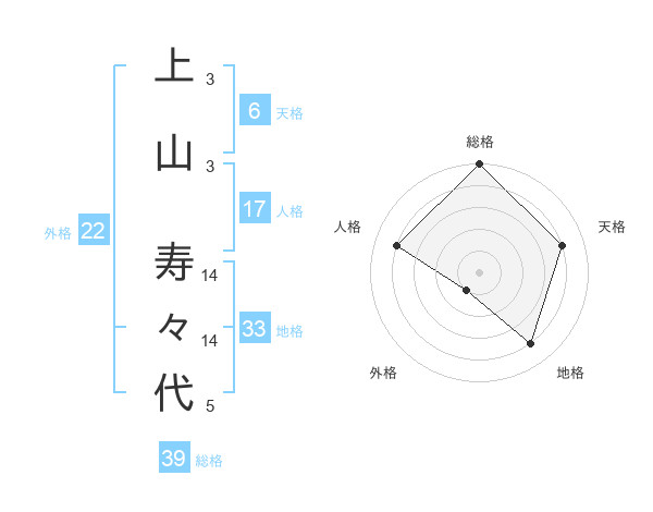 上山 寿々代さんを姓名の画数から五運を鑑定