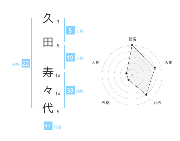 久田 寿々代さんを姓名の画数から五運を鑑定