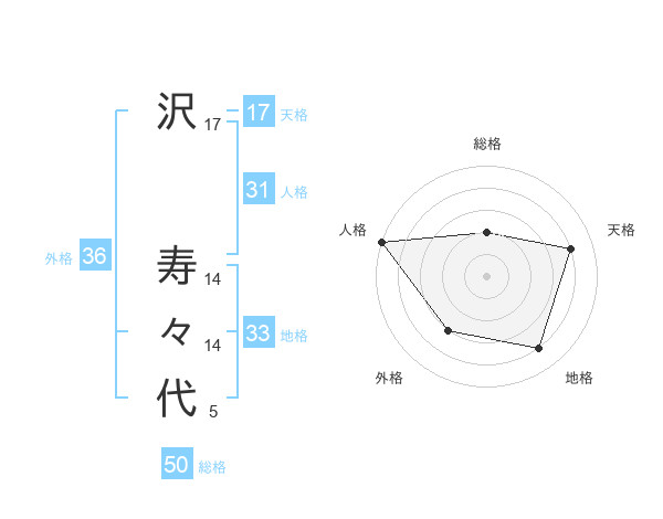 沢 寿々代さんを姓名の画数から五運を鑑定