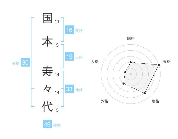 国本 寿々代さんの天格は16画の5点!
