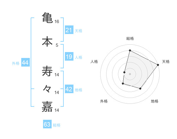 亀本 寿々嘉さんの総格は63画の4点!