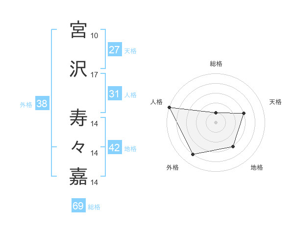 宮沢 寿々嘉さんを姓名の画数から五運を鑑定
