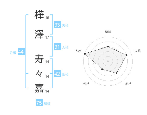 樺澤 寿々嘉さんの総格は75画の3点!