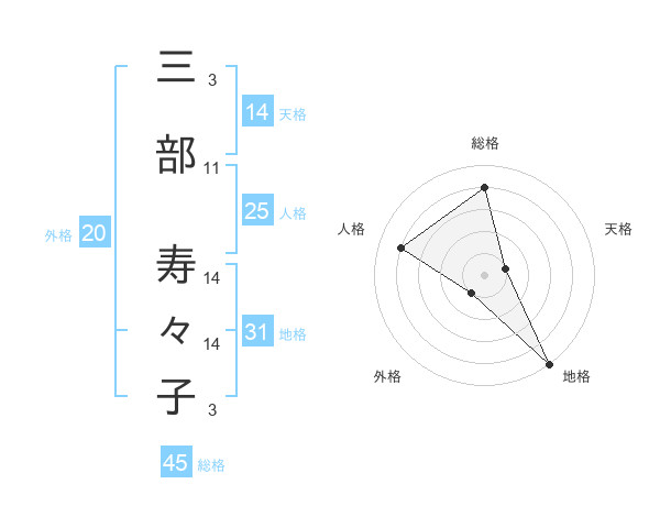 三部 寿々子さんの天格は14画の1点!