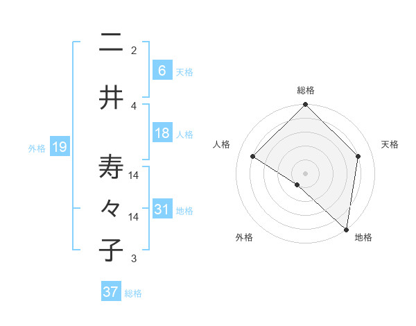 二井 寿々子さんを姓名の画数から五運を鑑定