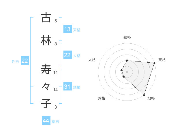 古林 寿々子さんの総格は44画の2点!