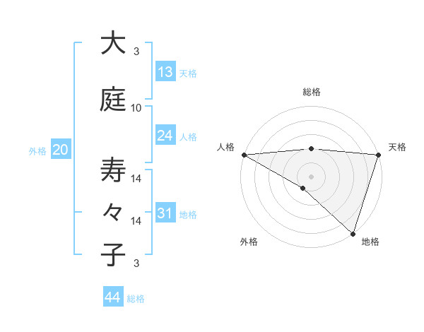 大庭 寿々子さんの総格は44画の2点!