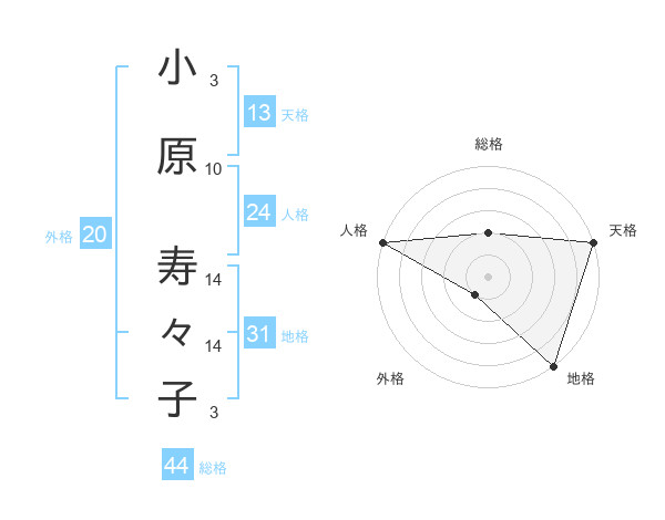 小原 寿々子さんを姓名の画数から五運を鑑定