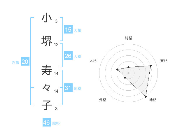小堺 寿々子さんを姓名の画数から五運を鑑定