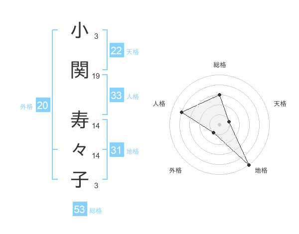 小関 寿々子さんを姓名の画数から五運を鑑定