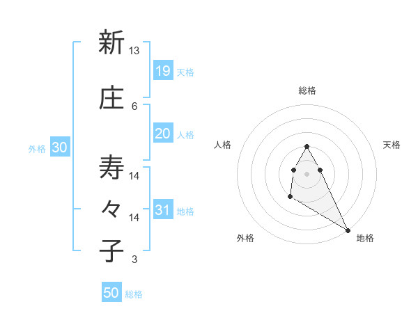 新庄 寿々子さんの天格は19画の1点!
