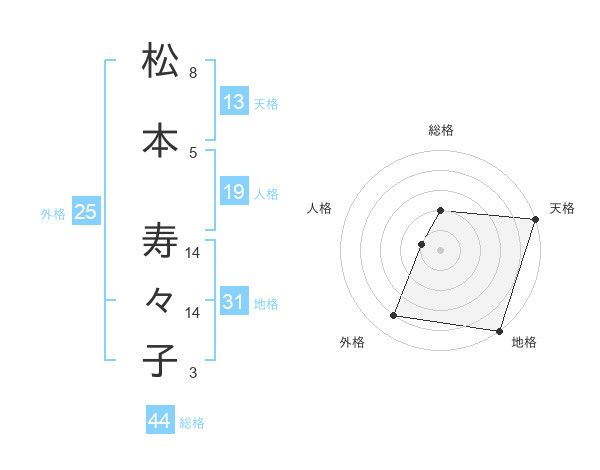 松本 寿々子さんを姓名の画数から五運を鑑定