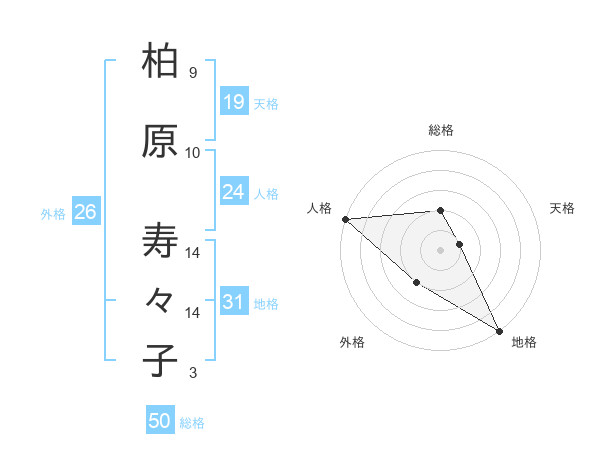 柏原 寿々子さんを姓名の画数から五運を鑑定