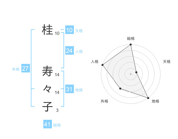 桂 寿々子さんの地格は31画の5点!