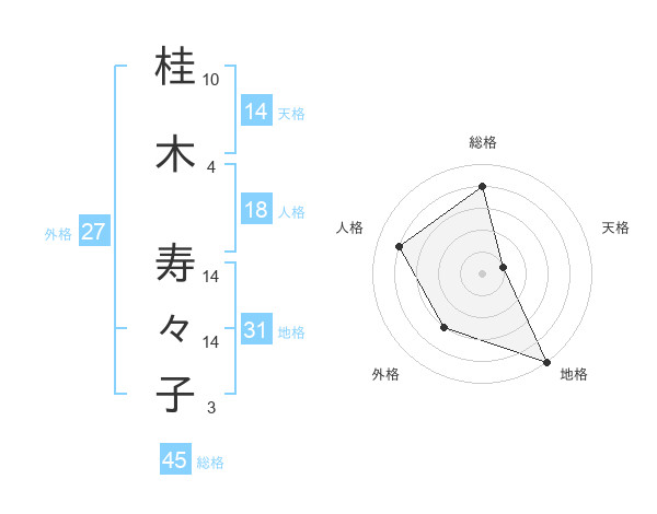 桂木 寿々子さんを姓名の画数から五運を鑑定