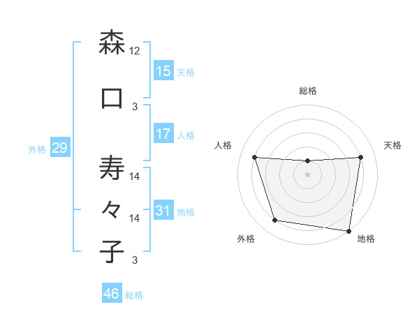 森口 寿々子さんを姓名の画数から五運を鑑定