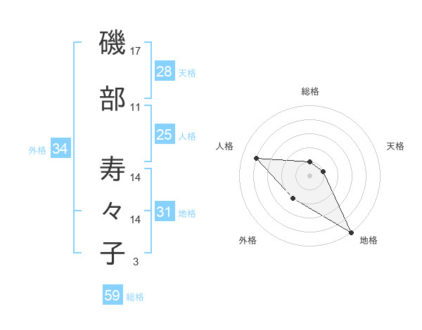 磯部 寿々子さんを姓名の画数から五運を鑑定
