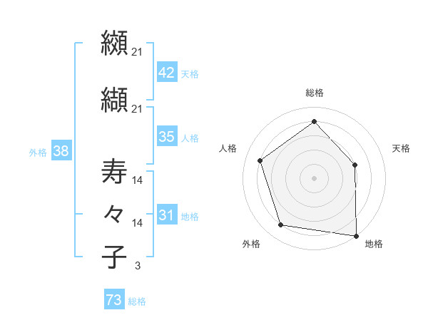 纐纈 寿々子さんの総格は73画の4点!