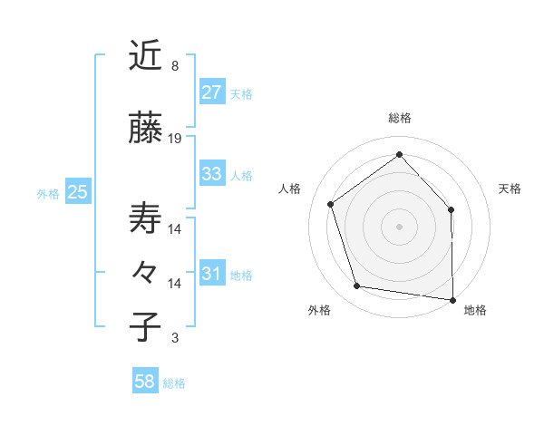 近藤 寿々子さんの総格は58画の4点!