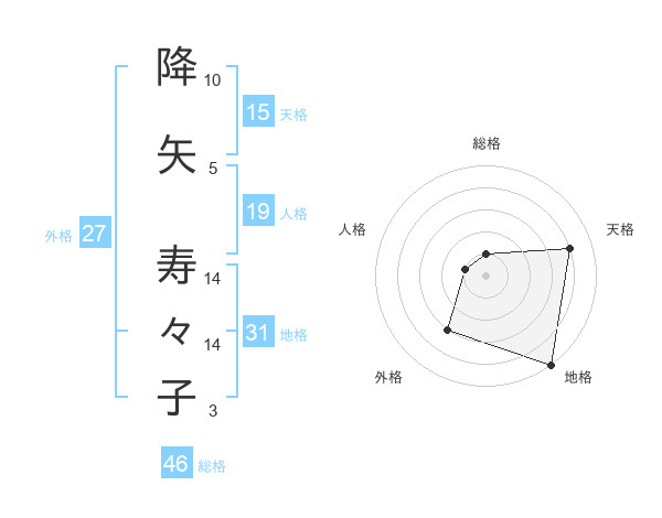 降矢 寿々子さんを姓名の画数から五運を鑑定
