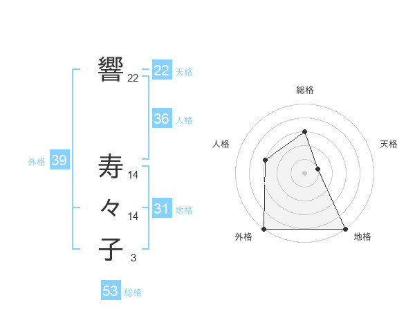 響 寿々子さんの総格は53画の3点!