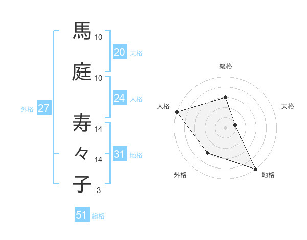 馬庭 寿々子さんの総格は51画の3点!