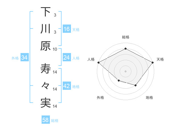 下川原 寿々実さんを姓名の画数から五運を鑑定