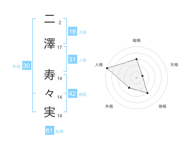 二澤 寿々実さんを姓名の画数から五運を鑑定