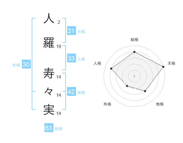 人羅 寿々実さんを姓名の画数から五運を鑑定