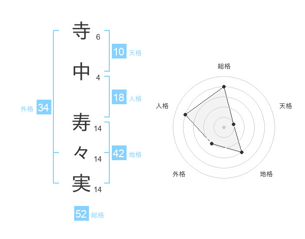 寺中 寿々実さんの総格は52画の4点!