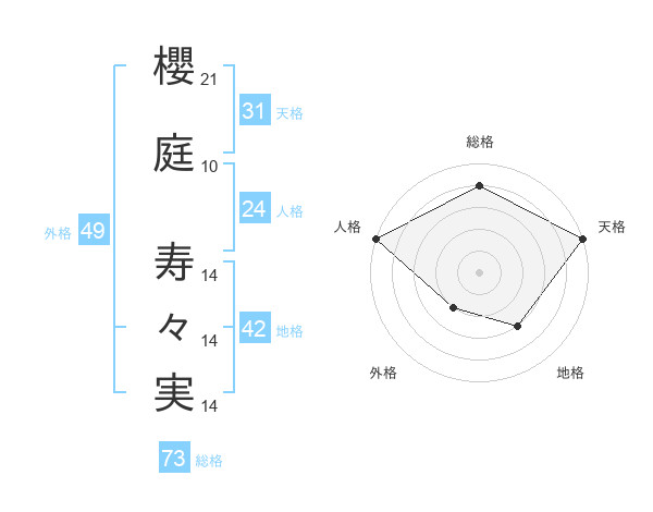 櫻庭 寿々実さんを姓名の画数から五運を鑑定