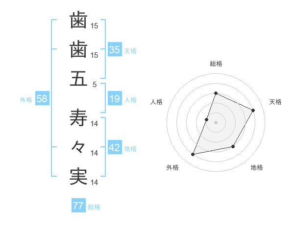 歯歯五 寿々実さんの総格は77画の3点!