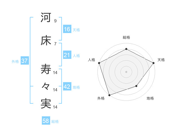 河床 寿々実さんの総格は58画の4点!