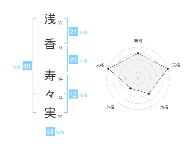 浅香 寿々実さんの総格は63画の4点!