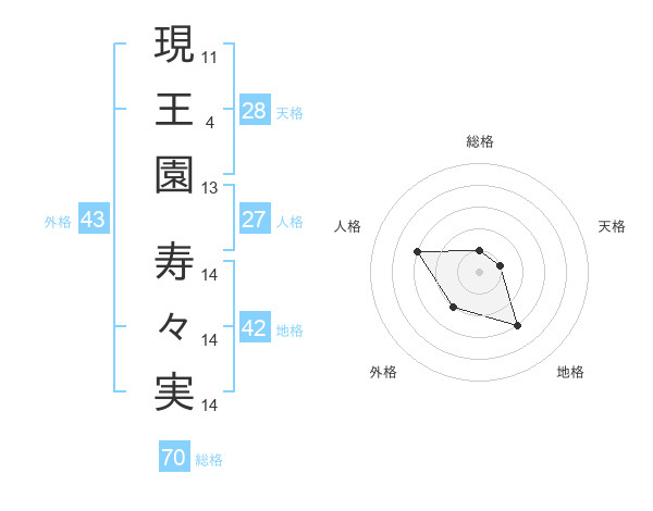 現王園 寿々実さんを姓名の画数から五運を鑑定