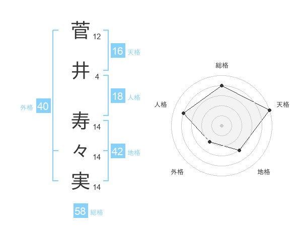 菅井 寿々実さんの天格は16画の5点!