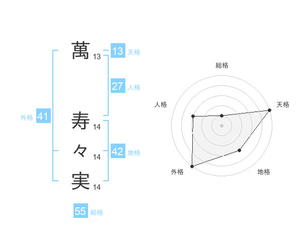 萬 寿々実さんの天格は13画の5点!