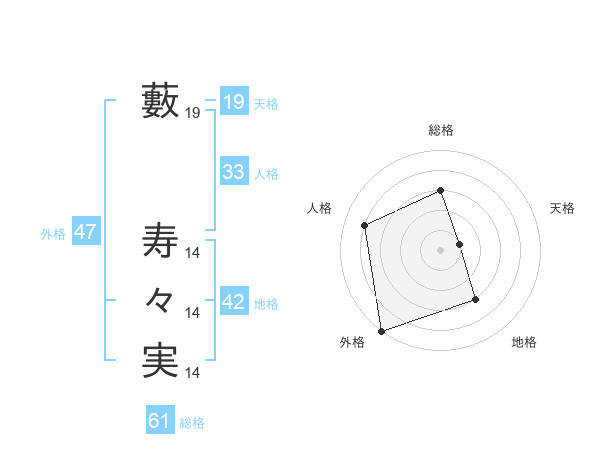 藪 寿々実さんの総格は61画の3点!