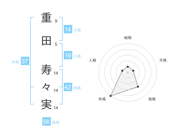 重田 寿々実さんの外格は37画の5点!