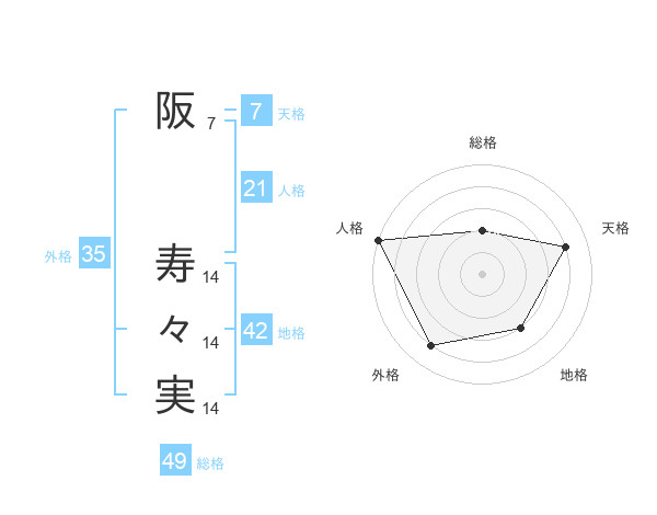 阪 寿々実さんを姓名の画数から五運を鑑定