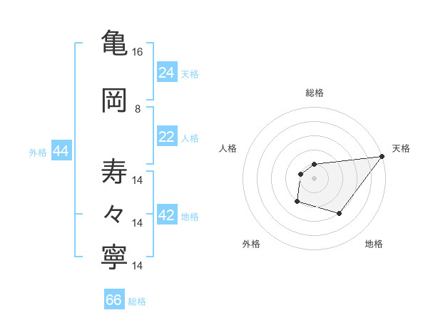 亀岡 寿々寧さんの総格は66画の1点!