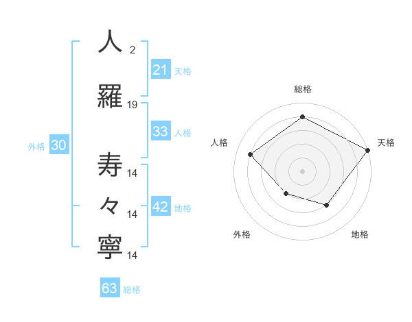 人羅 寿々寧さんを姓名の画数から五運を鑑定