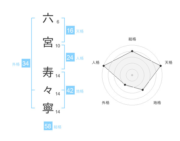 六宮 寿々寧さんの総格は58画の4点!