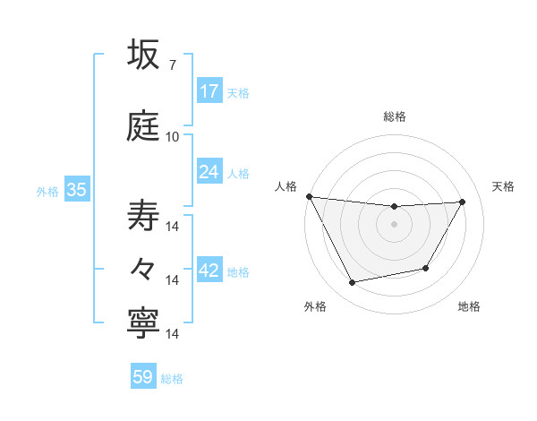 坂庭 寿々寧さんを姓名の画数から五運を鑑定