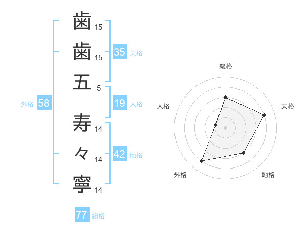 歯歯五 寿々寧さんを姓名の画数から五運を鑑定