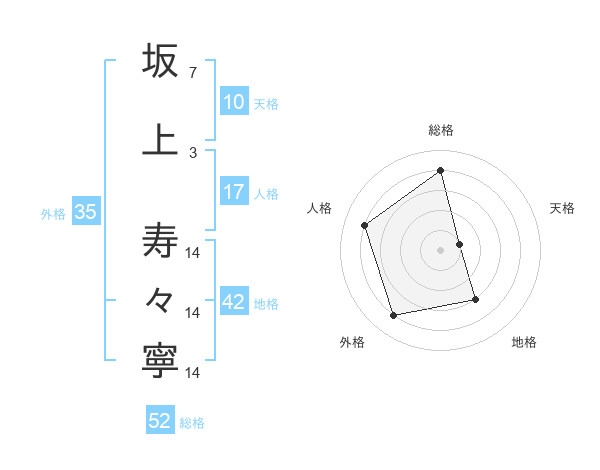 坂上 寿々寧さんの総格は52画の4点!